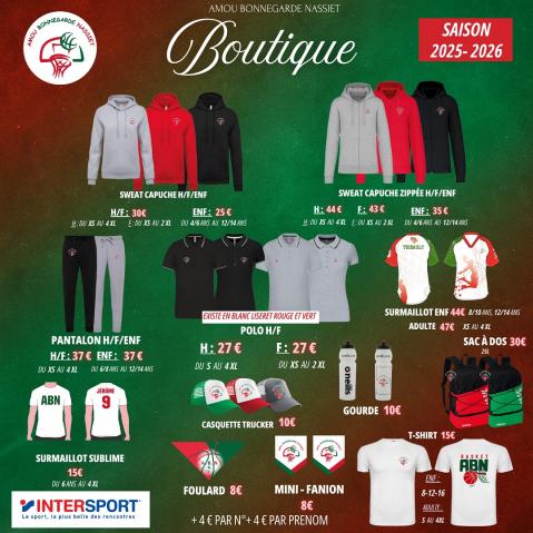 Dans la rubrique BOUTIQUE, taille enfant, femme et homme!! AIDES DEPARTEMENTALES - RAPPEL